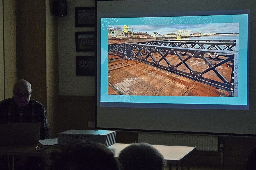 Our first guest was Graham Curphy of the Queen’s Pier Restoration Trust, and he gave a fascinating and engaging talk about the history of this huge structure in Ramsey Bay.